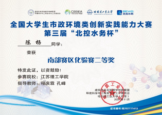 入职江苏理工学院以来,程庆霖老师始终坚持教书育人的初心,持续做好教书育人这件事。备课时,广泛涉猎各类材料,认真筛选、总结、归纳和汇总各类有利于实现教学目标的资料,确保给学生提供的材料具有实时性和有效性。在教学过程中,持续融合新的教学理念和方法,实施了产教融合、课程思政、项目教学,翻转课堂等。近两年,获批了国家产教融合教学改革项目1项、完成校级教改项目1项,作为副主编参与编写《工程制图-环境生态工程》教材1部,获得学院教学讲课比赛二等奖。指导学生积极参加各类学科竞赛,近年来多次获得国家、省化工设计大赛,全国大学生市政环境大赛等各类奖项,个人也获得优秀领队、金牌裁判和优秀指导老师的称号。